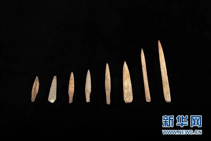 這是甘肅慶陽南佐遺址出土的涂有朱砂的骨鏃。(圖片由南佐遺址聯(lián)合考古隊提供)
