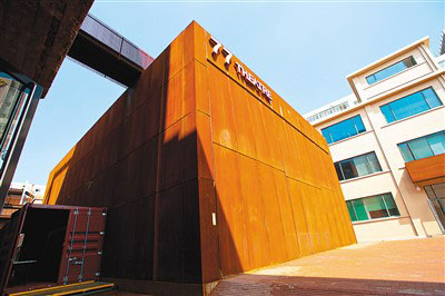 沿著園區(qū)里迂回旋轉(zhuǎn)的鋼梯來到樓頂,眼前豁然開朗——與園區(qū)一街之隔有中國美術(shù)館、三聯(lián)書店,向西是北大紅樓舊址,向南是北京人民藝術(shù)劇院,向北則是中央戲劇學院。“我們在調(diào)研中發(fā)現(xiàn),周邊戲劇、影視資源非常豐富,于是考慮將園區(qū)定位與東城區(qū)推進‘戲劇之城’建設發(fā)展的方向相契合。”77文創(chuàng)園運營方、東方道樸公司總經(jīng)理李明說。