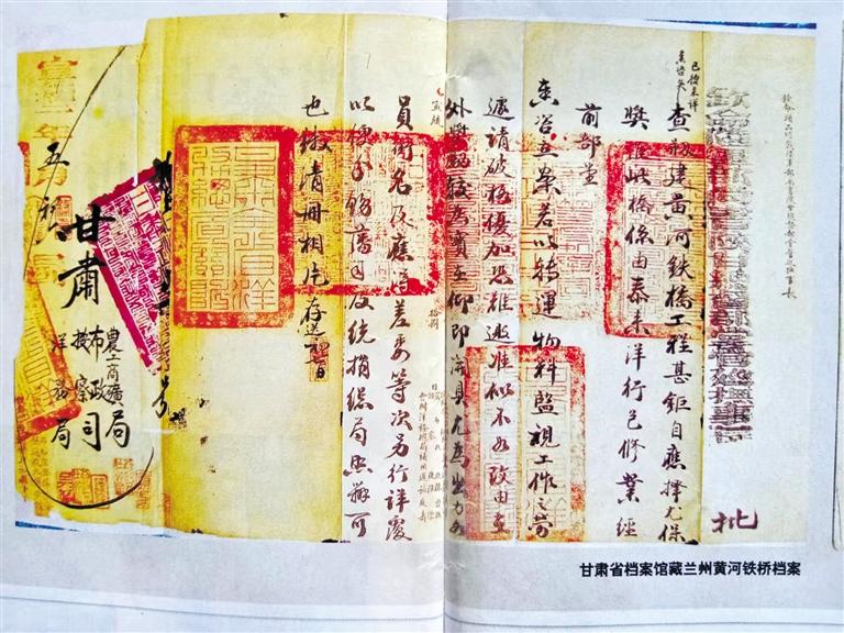在古金城蘭州架設(shè)橫跨于黃河南北兩岸的鐵橋,曾是左宗棠的夢(mèng)想,只因當(dāng)時(shí)洋商索價(jià)過(guò)高而作罷。30年后,正值清末實(shí)行新政,黃河鐵橋在陜甘總督升允和彭英甲的任上創(chuàng)修成功。建橋過(guò)程慘淡經(jīng)營(yíng),艱苦備至,已人所共知。好在建設(shè)黃河鐵橋形成的檔案,歸檔于甘肅農(nóng)工商礦總局,沒(méi)有存于當(dāng)時(shí)的布政使司,幸運(yùn)地躲過(guò)了民國(guó)二年那一劫。甘肅農(nóng)工商礦總局后更名為甘肅省署實(shí)業(yè)廳,民國(guó)十六年(1927年)甘肅省政府改實(shí)業(yè)廳為建設(shè)廳,這些檔案存于建設(shè)廳。1949年7月,國(guó)民黨甘肅省政府逃離前發(fā)出緊急命令:“轉(zhuǎn)移前將政府檔案做緊急處理”,重要檔案進(jìn)行“焚毀、埋藏、轉(zhuǎn)移”,次要檔案“從速列冊(cè)銷毀”。只因倉(cāng)皇逃離,未來(lái)得及銷毀。人民解放軍從解放蘭州的戰(zhàn)火中把包括鐵橋檔案在內(nèi)的許多檔案搶救出來(lái),由蘭州軍管會(huì)接管。2002年,《蘭州黃河鐵橋檔案》入選首批《中國(guó)檔案文獻(xiàn)遺產(chǎn)名錄》。