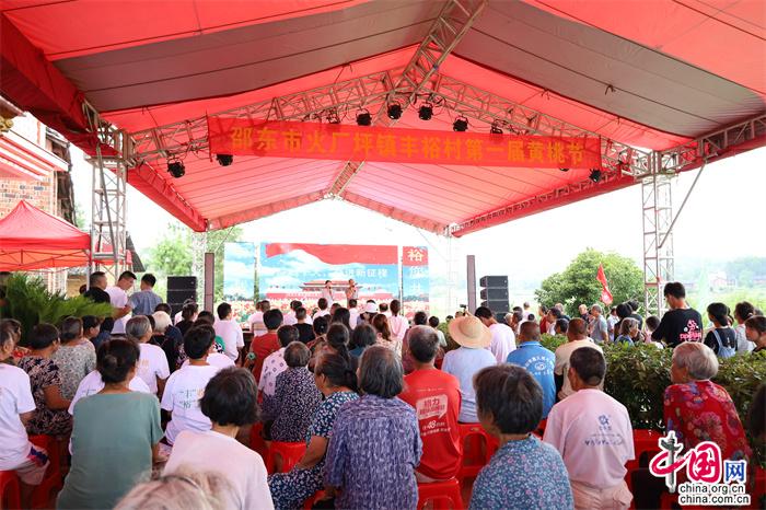 活動現(xiàn)場,邵東市政協(xié)黨組書記、主席羅健康宣布豐裕村首屆品桃節(jié)開幕。村民志愿者組織游客現(xiàn)場觀桃、品桃。舞蹈、花鼓戲、歌曲等由村里組織編排的精彩節(jié)目輪番上演,以文藝形式現(xiàn)場說桃、唱桃,贏得了觀眾的陣陣掌聲。豐裕村黃桃鮮嫩多汁、香甜可口,吸引游客紛紛前去基地摘桃、購桃,將活動氛圍推向高潮。當(dāng)天,共銷售黃桃1萬余斤,銷售金額9萬余元。