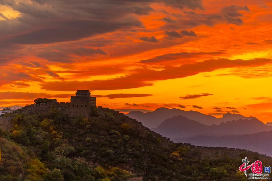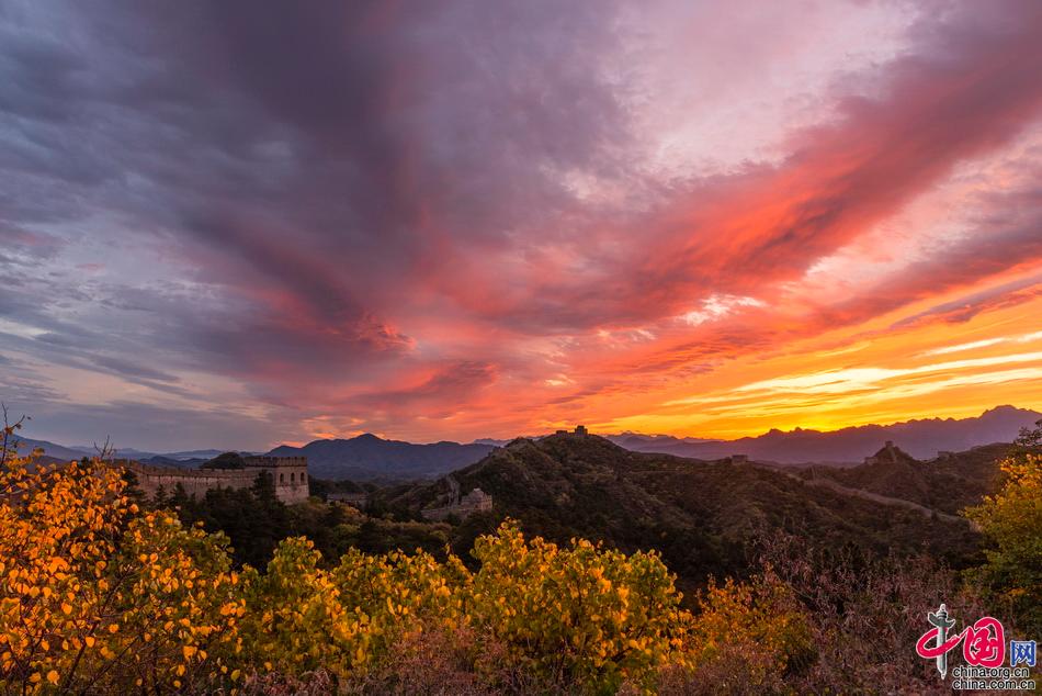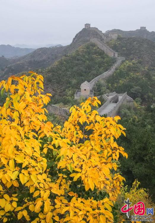 山巒起伏的古老長城層林盡染,令人驚艷。