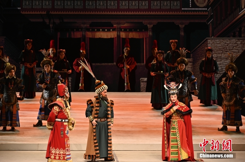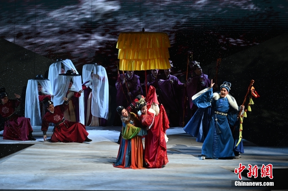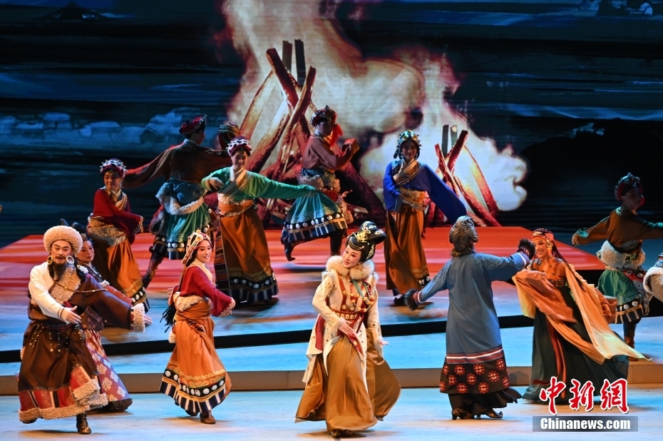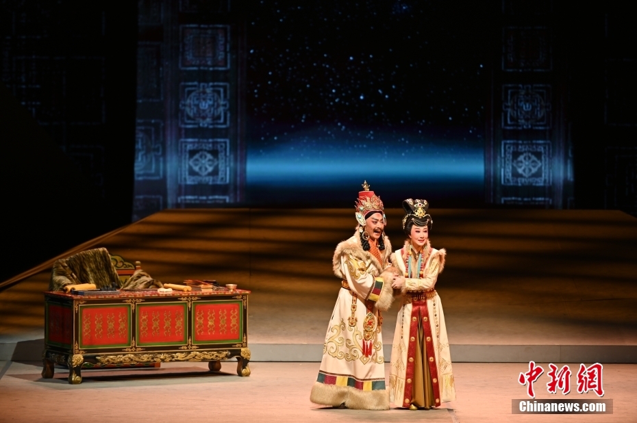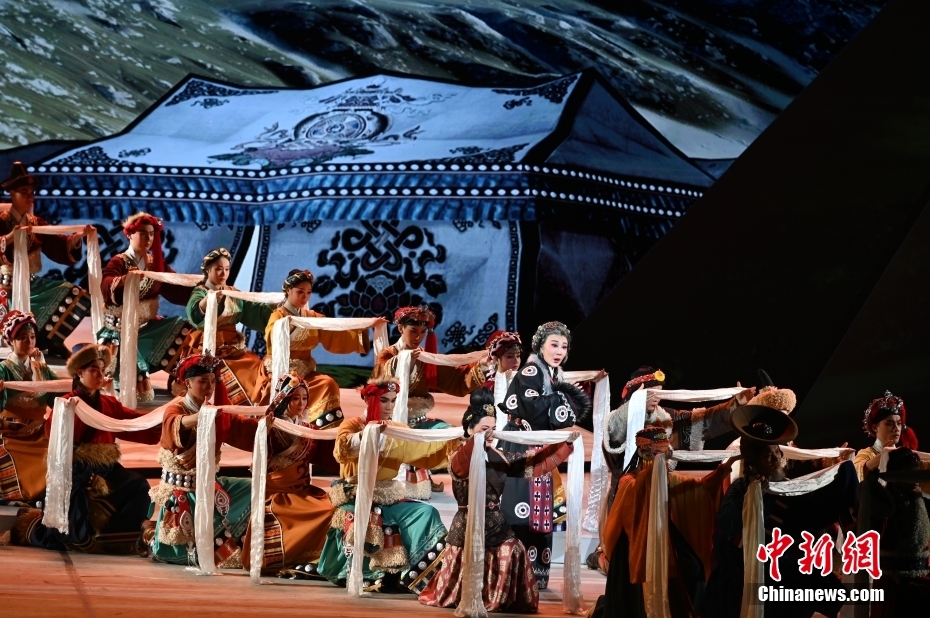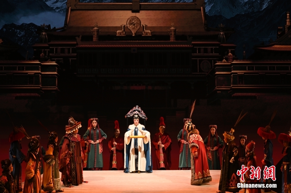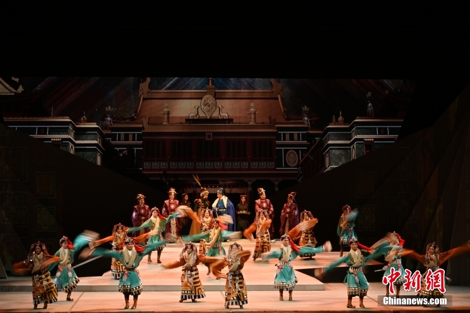 10月11日晚,大型新編歷史粵劇《文成公主》在廣東廣州大劇院首演。該劇以文成公主和親進藏的歷史事件為依據(jù)創(chuàng)作,講述了文成公主堅守吐蕃四十年,促進了吐蕃經(jīng)濟、文化的發(fā)展,加強了漢藏人民的友好關系。中新社記者 陳楚紅 攝