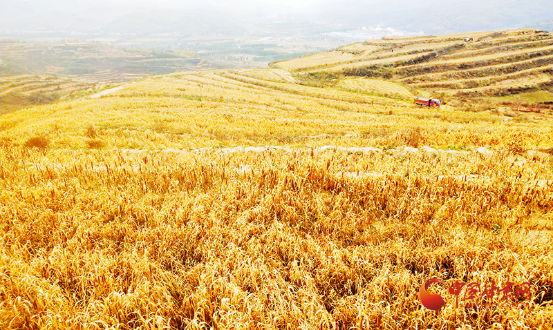 “看著金黃的谷田和一個個沉甸甸的谷穗,心里別提有多高興和踏實(shí)了。”看著傾注了自己一年心血和汗水的谷子喜獲豐收,村黨支部書記荊小軍臉上掛滿豐收的喜悅。