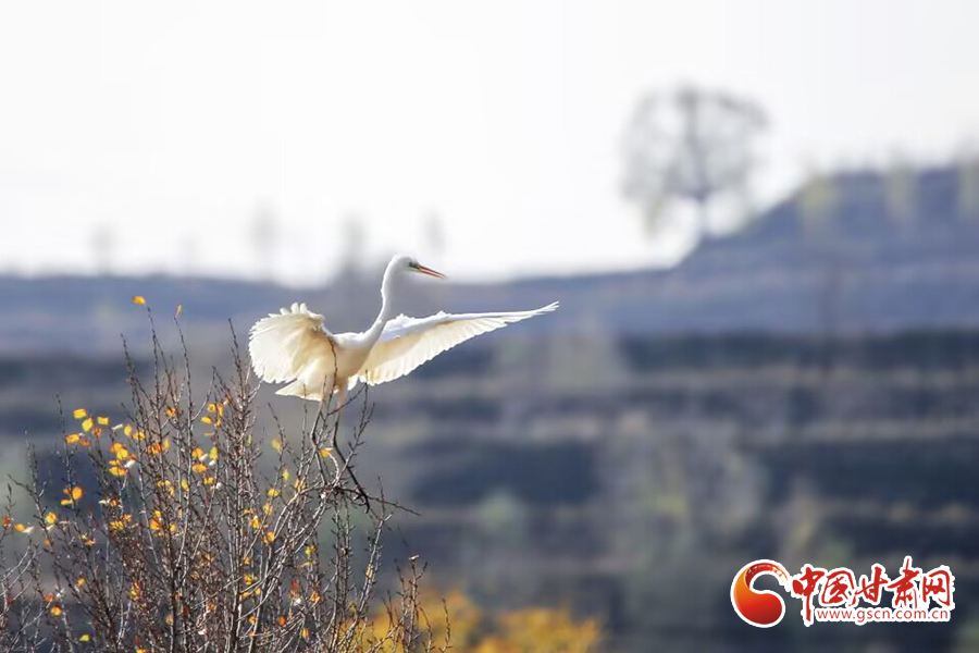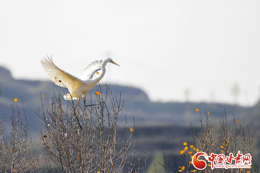 【隴拍客】平?jīng)龀缧牛荷鷳B(tài)美 鷺鳥飛