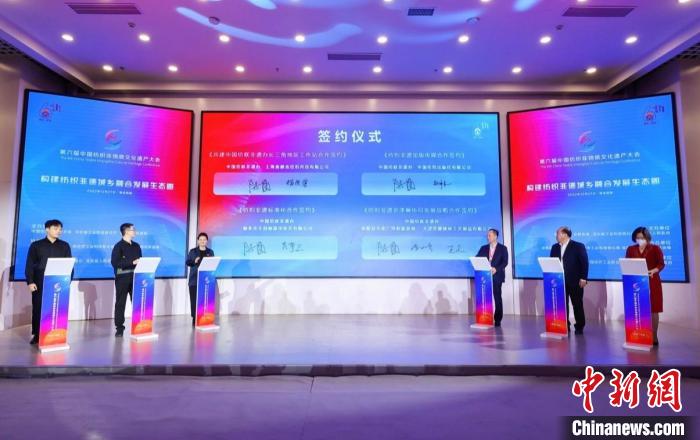 會上,嘉賓們共同見證了共建中國紡聯(lián)非遺辦長三角地區(qū)工作站合作簽約、紡織非遺出版?zhèn)髅胶献骱灱s、紡織非遺標(biāo)準(zhǔn)化合作簽約、紡織非遺京津冀協(xié)同發(fā)展戰(zhàn)略合作簽約、昆曲《御題棉花園》項目啟動簽約、我家的毛巾會唱曲兒授權(quán)合作簽約、共建河北大學(xué)高陽文化研究中心合作簽約等多項合作的達(dá)成。舉辦了中國紡織非遺推廣大使“推進(jìn)城鄉(xiāng)融合發(fā)展、全面實現(xiàn)鄉(xiāng)村振興”倡議行動。
