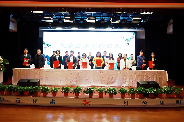 專題推介會上,由慶陽市文體廣電和旅游局黨組書記、局長郭麗君全面推介了慶陽文化旅游資源,慶陽旅游百事通國際旅行社總經(jīng)理毛永吉重點(diǎn)推介了慶陽旅游精品線路;重慶山水國旅、陜西中國旅行社等川、渝、陜、青、寧等?。▍^(qū)、市)旅行社與慶陽公共交通集團(tuán)旅行社、慶陽文化旅游投資集團(tuán)北豳風(fēng)旅行社等20家旅行社,相互簽訂了“引客入甘肅游慶陽”客源輸送及慶陽旅游產(chǎn)品聯(lián)合開發(fā)合作協(xié)議。推介環(huán)節(jié)還組織進(jìn)行了嗩吶演奏《沸騰的黃土地》、慶陽民歌《送吉祥》、南梁說唱傳統(tǒng)劇目《紅鳳先下山》以及民歌聯(lián)唱等極富隴東特色的文藝表演。推介會前,與會嘉賓還一起觀看了慶陽文旅形象及招商項(xiàng)目圖片展、非遺文創(chuàng)產(chǎn)品展。甘肅省文旅廳有關(guān)處室和省內(nèi)外旅行商、文旅企業(yè)、媒體記者代表,慶城縣政府、慶陽市重點(diǎn)景區(qū)、文旅企業(yè)等相關(guān)負(fù)責(zé)人共150余人參加。
