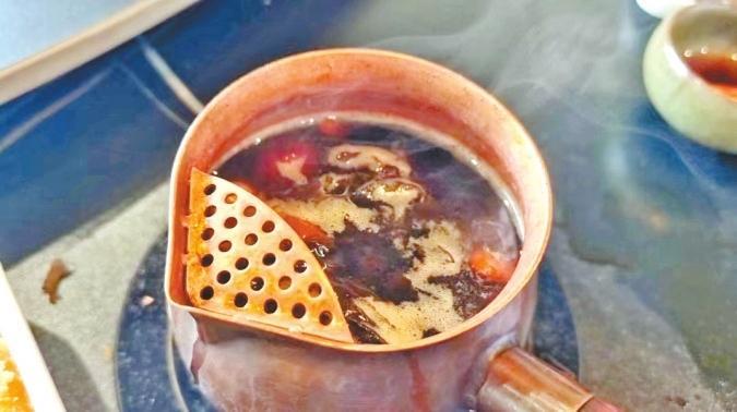 “‘茶圣’陸羽的《茶經·五之煮》記載,煮茶的時候會放蔥、姜、棗、橘皮、茱萸、薄荷等佐料,所以現(xiàn)在罐罐茶所添加的配料,如紅棗、枸杞、桂圓、葡萄干、菊花、冰糖等,其實就是最原始的煮茶法的延續(xù)。”唐陳虓說。