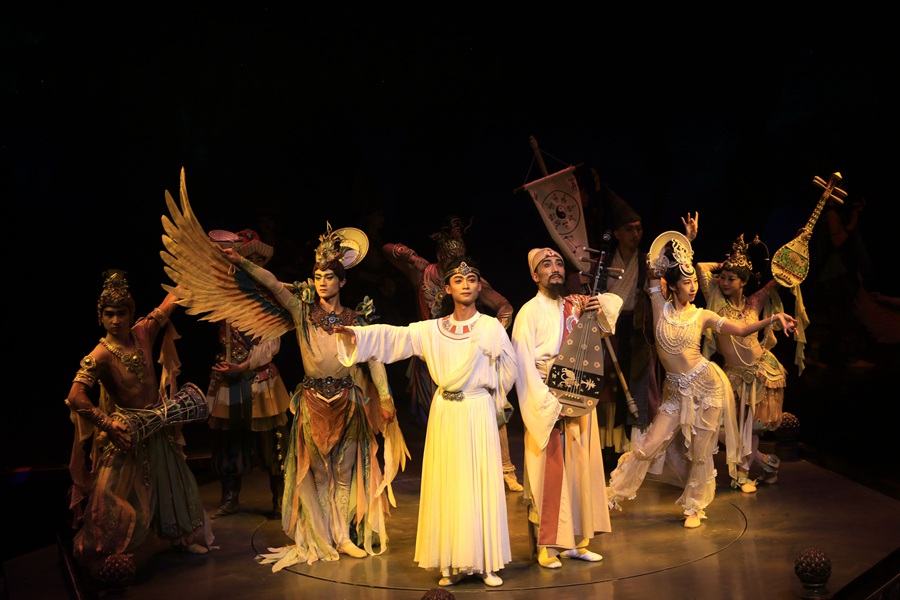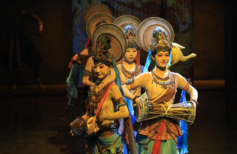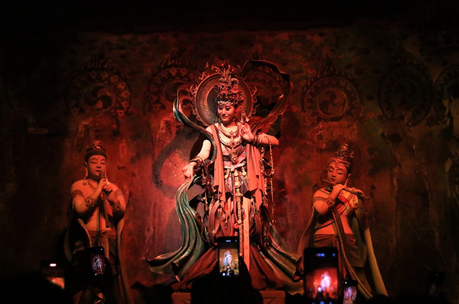 大型洞窟式沉浸體驗(yàn)劇《樂(lè)動(dòng)敦煌》演出現(xiàn)場(chǎng)。張曉亮攝