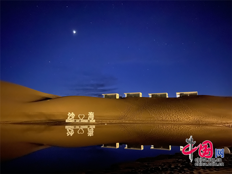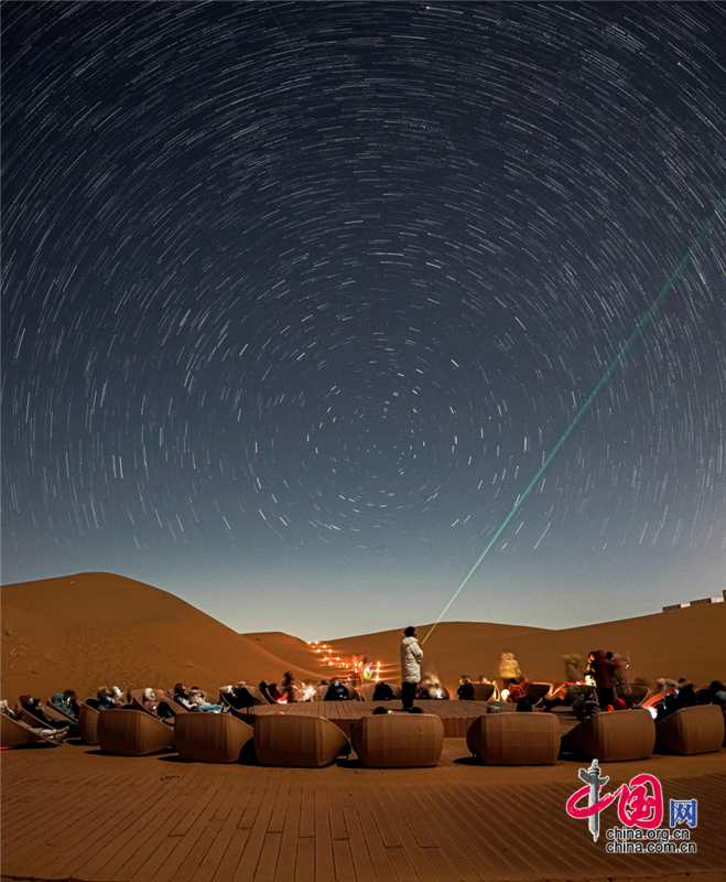 在沙漠區(qū),游客晨觀大漠日出,昏賞沙海夕陽(yáng),夜晚宿在星星酒店,感受躺在床上看星星的奇妙體驗(yàn),在星咖啡手工制作星星原木版畫(huà),在五行沙療室滋養(yǎng)生命的每一個(gè)細(xì)胞,在觀星谷跟著星空講師春看獅子座、夏觀銀河、秋尋仙女座、冬追獵戶座,期待與一場(chǎng)流星雨的不期而遇。