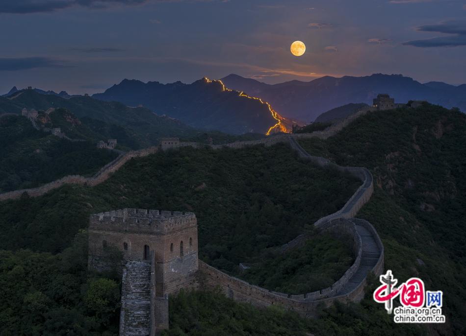 初秋的金山嶺長城在超級月亮的映襯下,更顯得神秘而壯美。金山嶺長城的雄偉壯觀和自然界的美妙令人難忘。