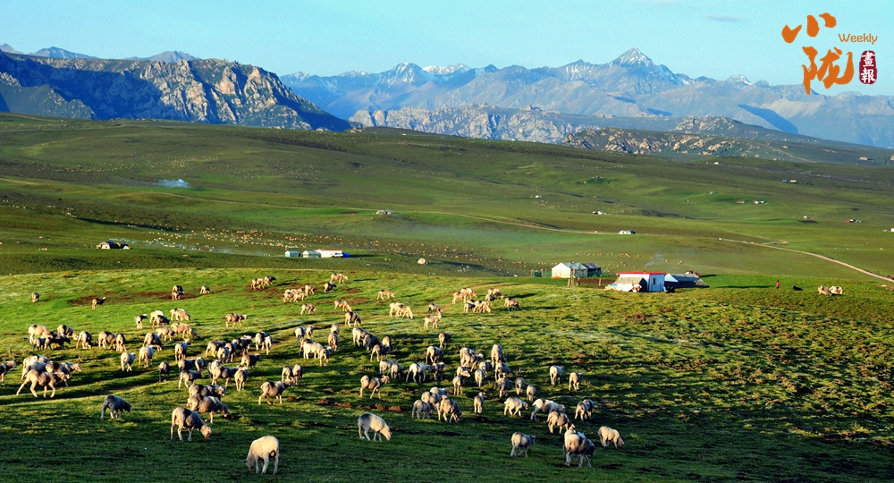 祁連山下綠草如茵,牛羊點(diǎn)綴其中,別具風(fēng)情。