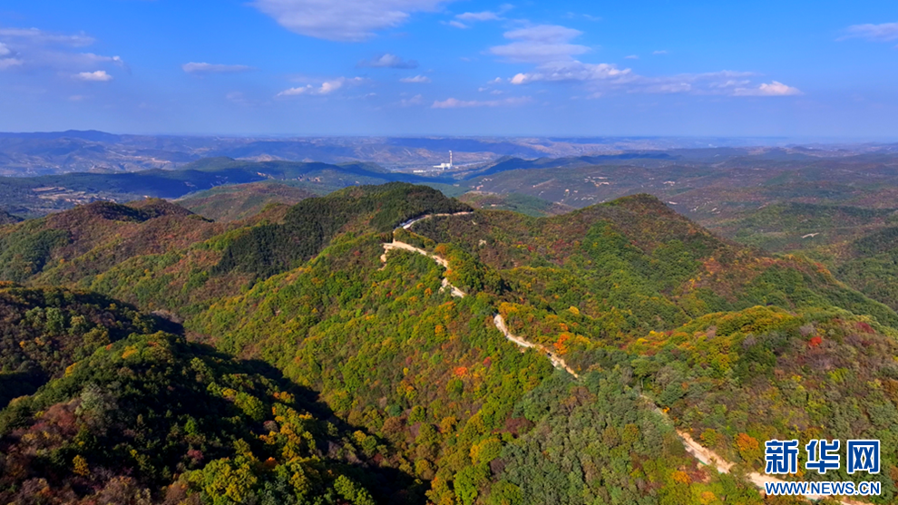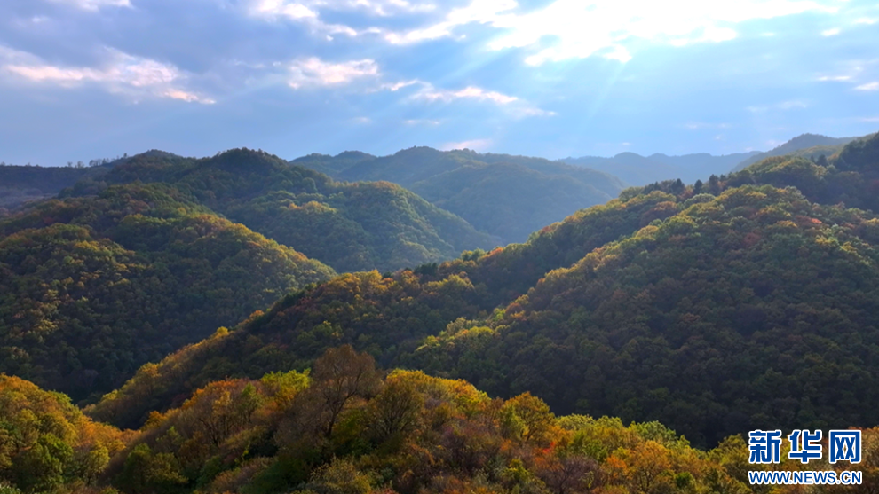 深秋時(shí)節(jié),甘肅省平?jīng)鍪谐缧趴h的唐帽山層林盡染,群山疊彩,勾勒出一幅絢麗多姿的美景圖。(圖片:高亮 文字:關(guān)改琴)