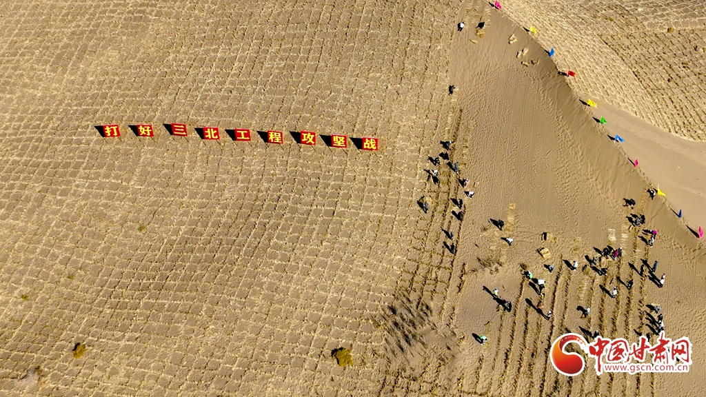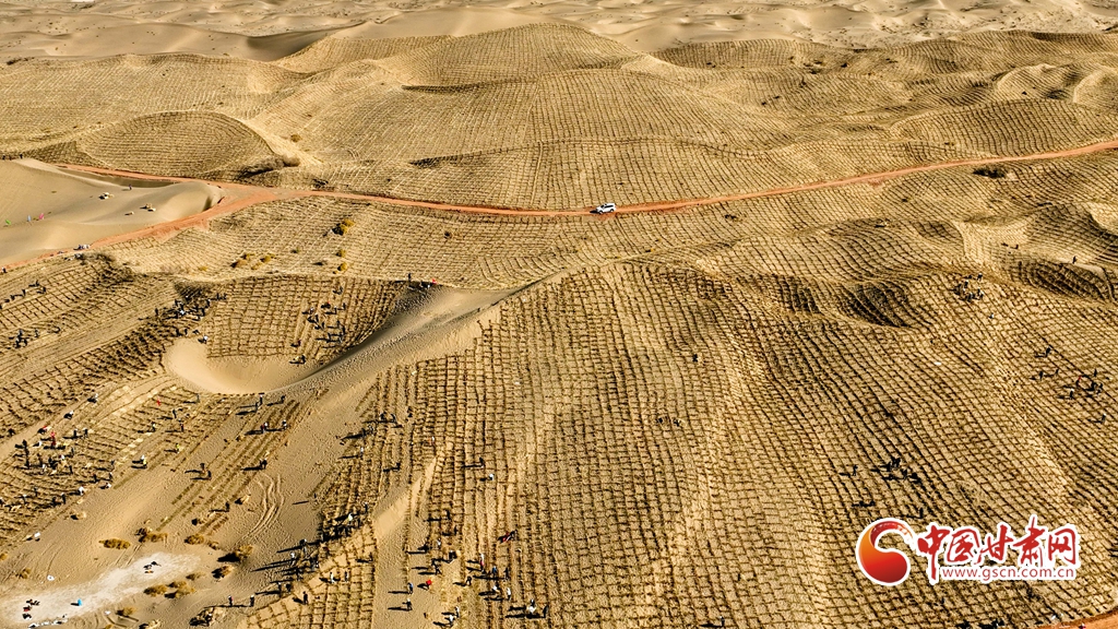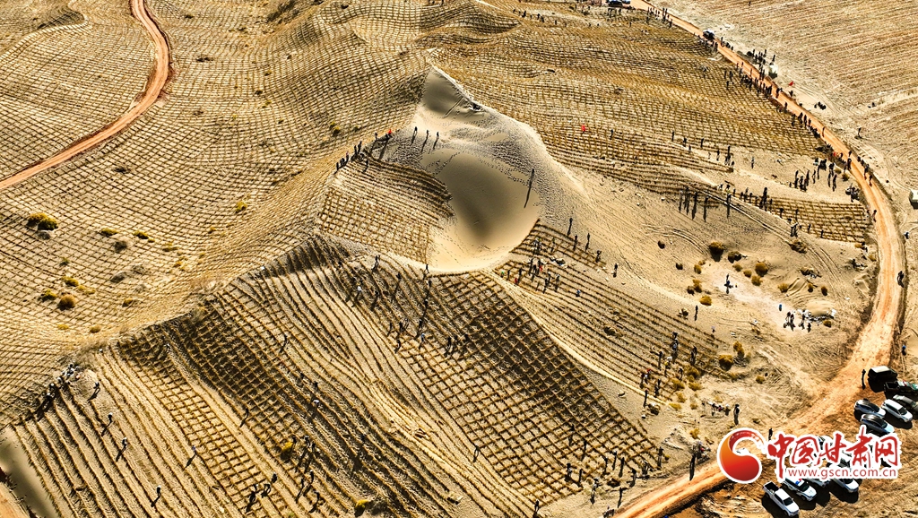 10月31日,河西走廊——塔克拉瑪干沙漠邊緣阻擊戰(zhàn)張掖區(qū)域戰(zhàn)役正式啟動,張掖市千名市民來到高臺縣巴丹吉林沙漠南緣西沙窩風沙口治理區(qū)共同義務壓沙障。