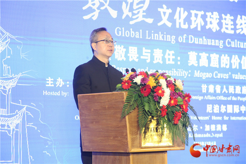 中國(guó)甘肅網(wǎng)12月4日訊(西北角·中國(guó)甘肅網(wǎng)記者 宋芳科 )12月4日,“敦煌文化環(huán)球連線——走進(jìn)尼泊爾”在蘭州、敦煌、尼泊爾三地線上線下同步舉辦。中國(guó)駐尼泊爾大使陳松、尼泊爾教育與科技部部秘普拉米拉·黛維·巴吉拉恰利亞,酒泉市委常委、敦煌市委書(shū)記石琳、尼泊爾藍(lán)毗尼文化市市長(zhǎng)薩魯丁·穆薩爾曼等應(yīng)邀出席活動(dòng)并講話,活動(dòng)由甘肅省政府外事辦主任張寶軍主持。