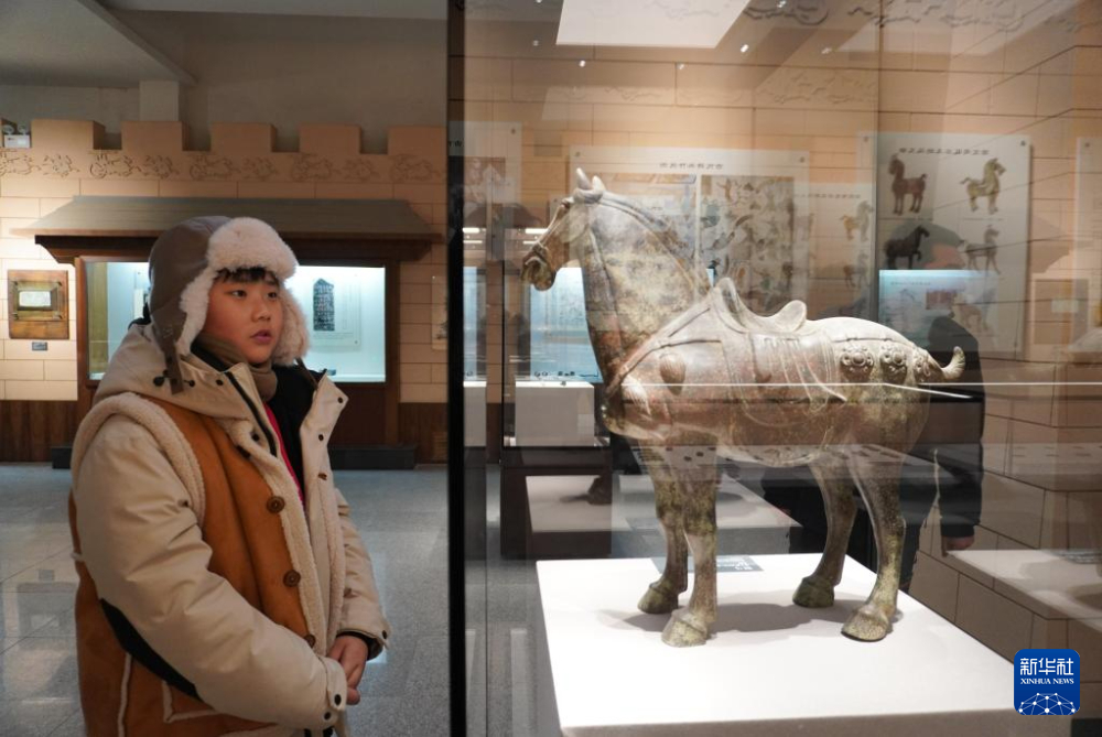 1月21日,在甘肅省敦煌市,參加研學(xué)活動的學(xué)生參觀陽關(guān)博物館。新華社記者 馬希平 攝