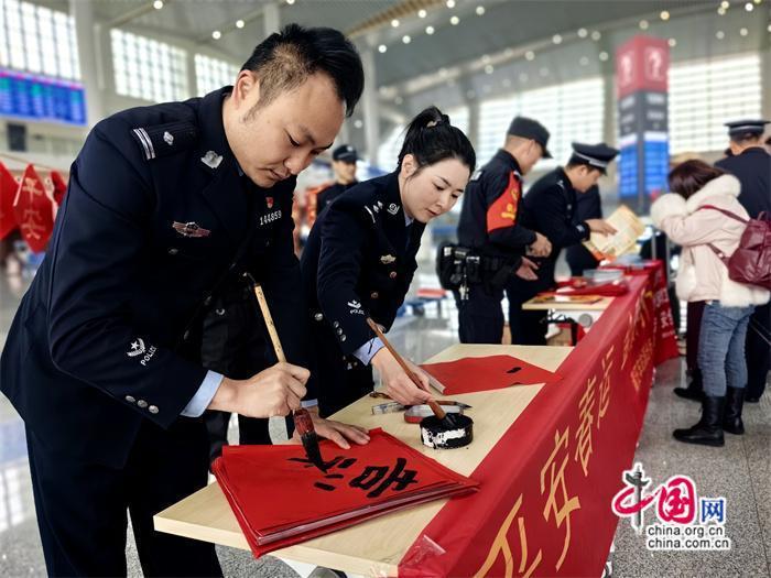 本次活動(dòng)由莆田車站派出所牽頭組織,聯(lián)合中信銀行、莆田站共同開展。活動(dòng)期間,民警與志愿者在莆田站甬廣場(chǎng)候車室為旅客發(fā)放高鐵安全宣傳單及春聯(lián),并由青年民警現(xiàn)場(chǎng)書寫春聯(lián)、福字送給來往旅客,將平安、溫馨傳遞給每一個(gè)人。