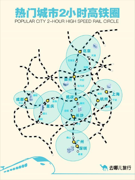 從去哪兒火車票預約情況來看,2小時高鐵圈內(nèi)仍是旅客出游的主要目的地。北京2小時高鐵圈內(nèi),熱門目的地為天津、濟南、石家莊、秦皇島、大同;上海2小時高鐵圈,熱門目的地為杭州、蘇州、南京、湖州、寧波。