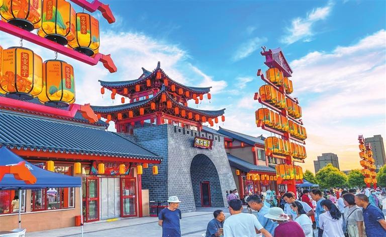 夏日的傍晚,這里格外熱鬧。步入巷內(nèi),穿過仿古牌坊,行走在青石板路上,經(jīng)過新中式仿古的巷子,寬敞的街道兩邊都是仿古的建筑,曲徑通幽處,美食坊,手工作坊,酒吧街,一字兒鋪排開,小攤上當?shù)刈灾频纳介?、農(nóng)民自己種的各種蔬菜、自制的各種小工具、精美小籮筐、葫蘆瓢等好多物品勾起了兒時的回憶。