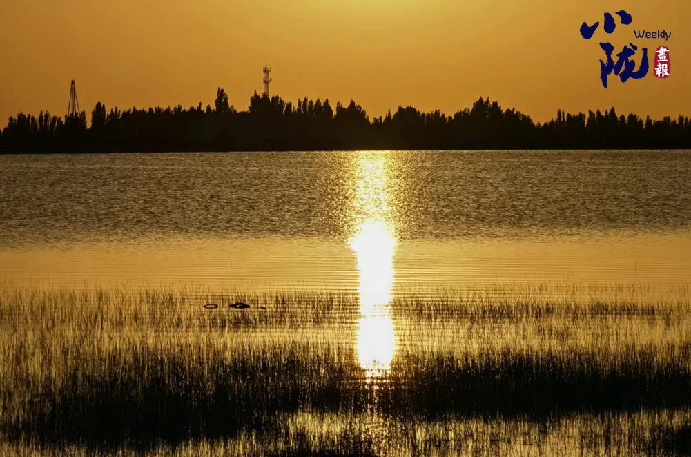 落日余暉下,濕地的水面上泛著暖融融的金光,顯得那么靜謐。此時(shí)的濕地,演繹著一個(gè)和白天完全不同的自己,似一幅色彩斑斕、意蘊(yùn)萬千的畫卷。