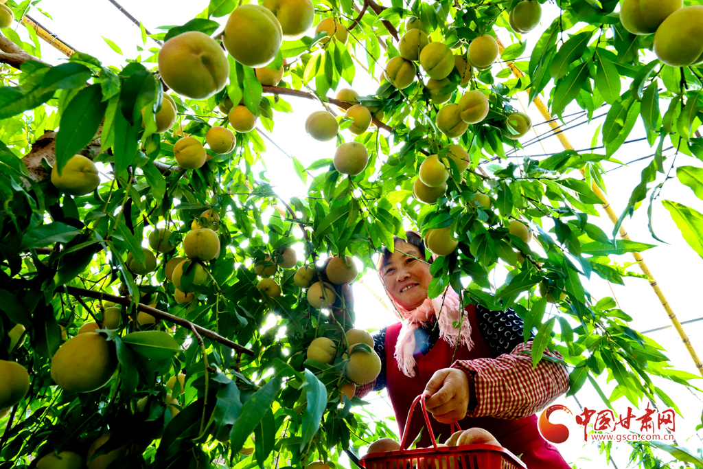 10月24日,在張掖市甘州區(qū)長安鎮(zhèn)萬通果蔬種植專業(yè)合作社“甘泉雪桃”種植基地大棚內(nèi),種植戶正在為甘肅蘭州和青海西寧的客戶采摘裝運“甘泉雪桃”。