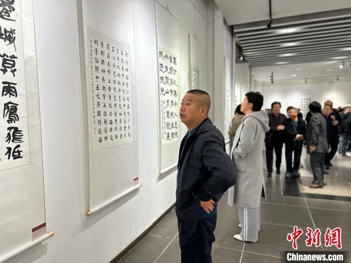圖為展覽吸引書法愛(ài)好者觀賞。楊娜 攝