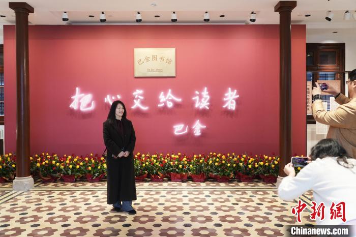 11月25日,巴金先生誕辰120周年,巴金圖書館在上海揭幕,實現了巴老生前想要創(chuàng)辦一座圖書館的心愿。圖為觀眾在巴金圖書館留影。中新社記者 張亨偉 攝