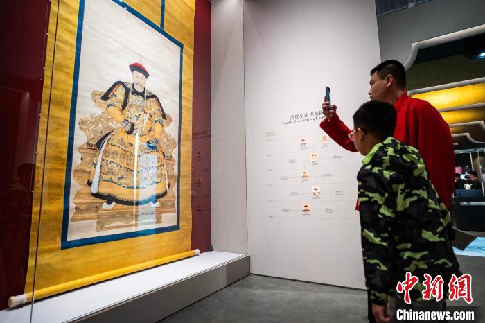 圖為觀眾觀看故宮博物院藏《雍正帝朝服像》展品。中新網(wǎng)記者 侯宇 攝