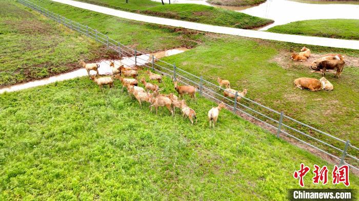 麋鹿在洞庭湖區(qū)繁衍生息。李芳森 攝
