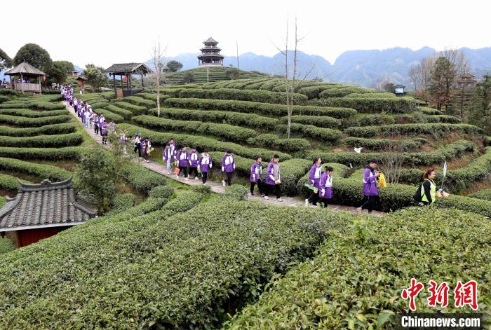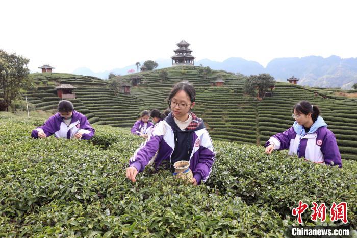 3月15日至16日,廣西柳州市一所中學(xué)組織千人研學(xué)團(tuán)到三江侗族自治縣八江鎮(zhèn)布央村仙人山景區(qū)開展茶文化研學(xué)活動(dòng),沉浸式采春茶、炒春茶、品春茶,深入了解茶種植、茶制作、茶文化、茶品鑒等知識(shí),進(jìn)一步培養(yǎng)實(shí)踐能力、提高勞動(dòng)素養(yǎng)。圖為研學(xué)活動(dòng)現(xiàn)場。龔普康 攝