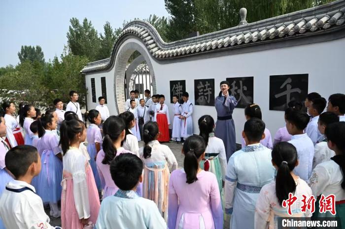 來自省內(nèi)外的學(xué)生在王維水墨小鎮(zhèn)參加研學(xué)活動(dòng)。(資料圖片) 吳遵民 攝