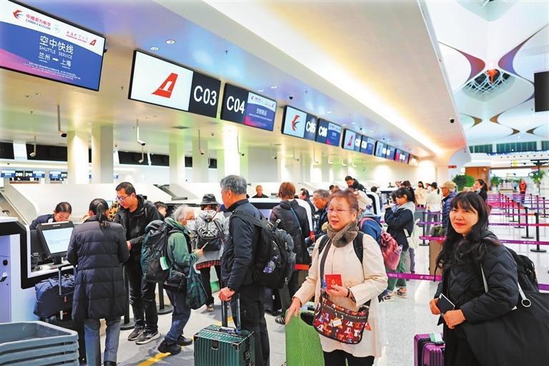 旅客在T3航站樓出港大廳柜臺窗口辦理值機(jī)。新甘肅·甘肅日報記者 田蹊