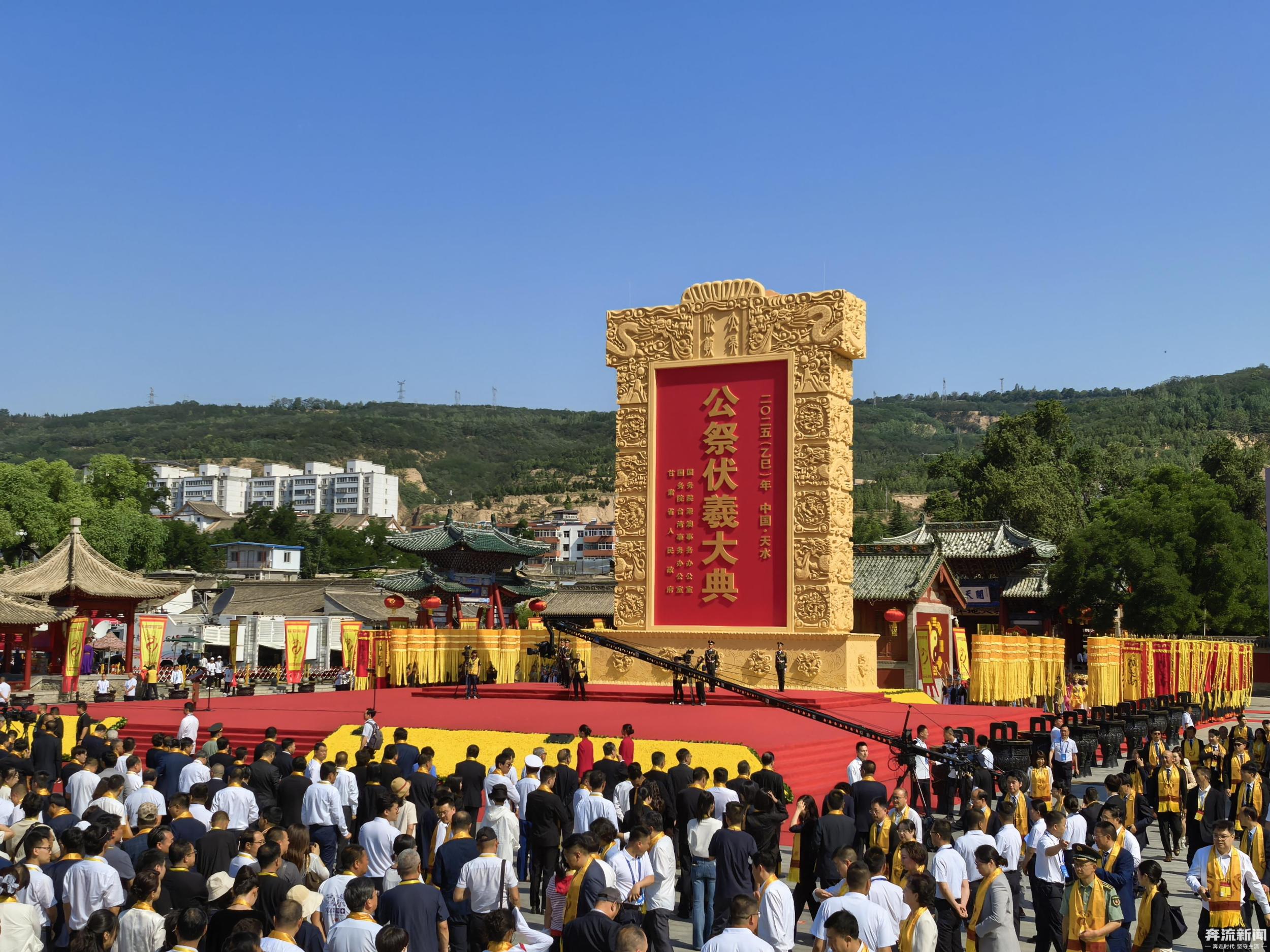 6月21日,夏至,甘肅天水,整座城沉浸在莊重而神圣的氛圍中。當(dāng)日,2025(乙巳)年公祭中華人文始祖伏羲大典在天水伏羲廟盛大舉行。人們從四面八方匯聚于此,共赴這場(chǎng)跨越千年的文化之約,向人文始祖伏羲致以最崇高的敬意。與此同時(shí),寶島臺(tái)灣也同步舉行海峽兩岸共祭中華人文始祖伏羲典禮。
