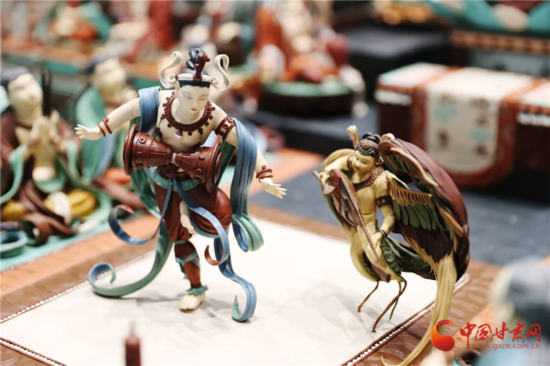 今年蘭洽會(huì)甘肅非遺館,正中央的敦煌文化題材《觀無量壽經(jīng)變》面塑受到客商全員追捧。經(jīng)過這里的人都會(huì)駐足欣賞,感受面塑藝術(shù)的精彩絕倫,其中,敦煌題材的面塑,飛天人物似乎從壁畫里飛了出來,栩栩如生。