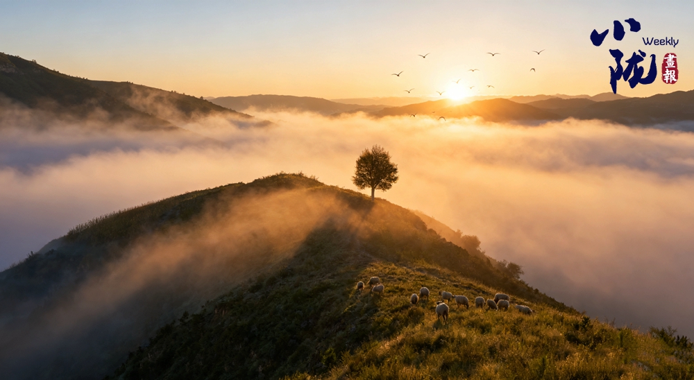 晨光初露時,薄霧浮動于溝壑之間,黃土塬的輪廓在光線中起伏,與飛翔的鳥兒、走過坡地的羊群與塬面草色,構成一幅絢麗的畫卷。