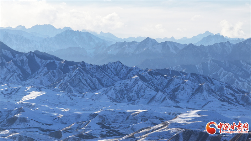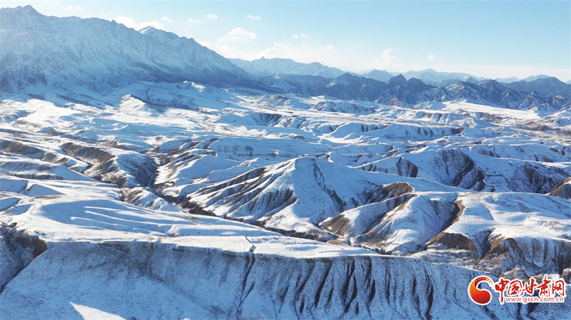 時下,位于民樂縣境內的祁連山脈巍峨群峰被皚皚白雪覆蓋,蔚為壯觀。