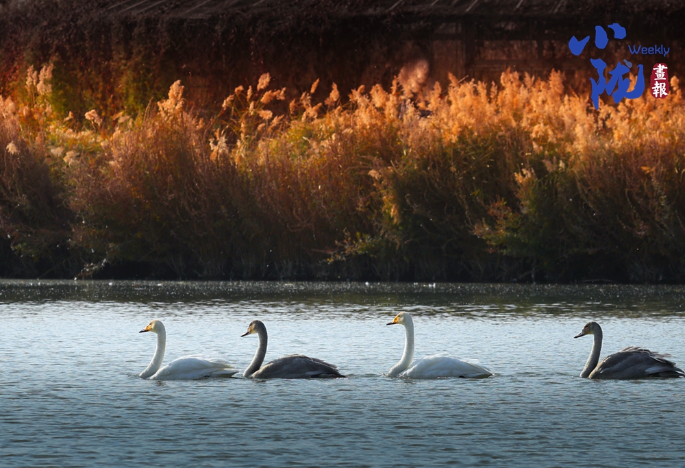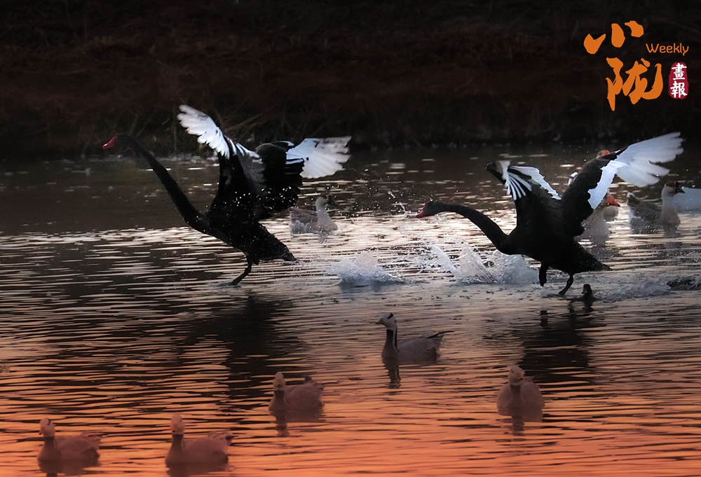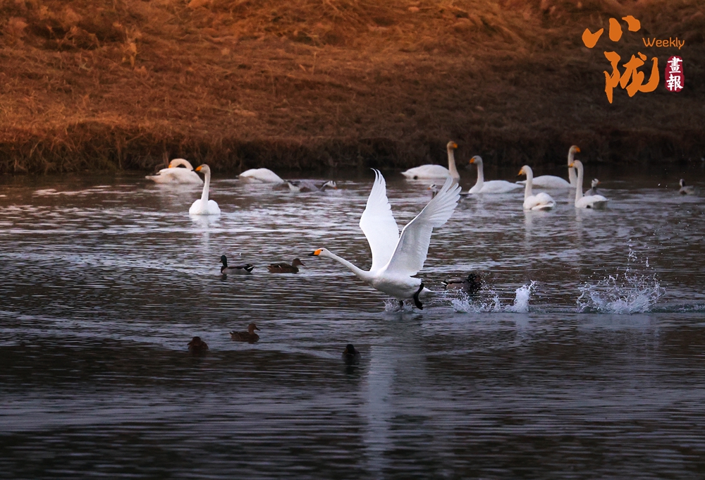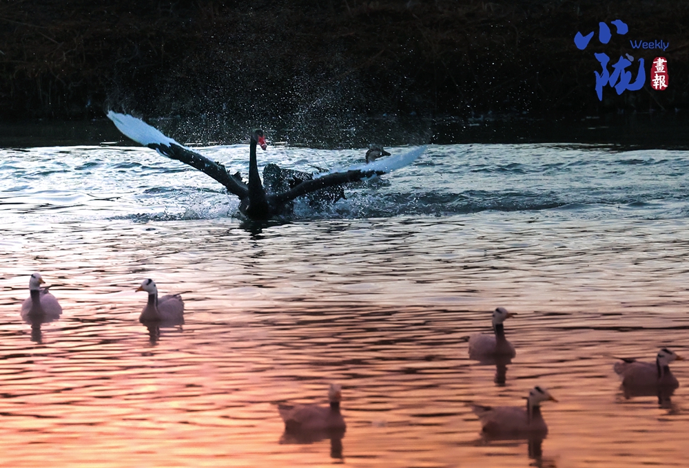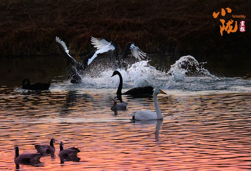 這里聚集了黑鸛、白鷺、鴛鴦、天鵝、赤麻鴨、灰雁等多種水鳥(niǎo),它們?cè)邳S昏里愜意地游弋,或扎進(jìn)水里捕魚(yú),或相互追逐戲水的畫面,既震撼又溫柔,成為攝影愛(ài)好者和游人爭(zhēng)相追逐的“冬日奇景”。