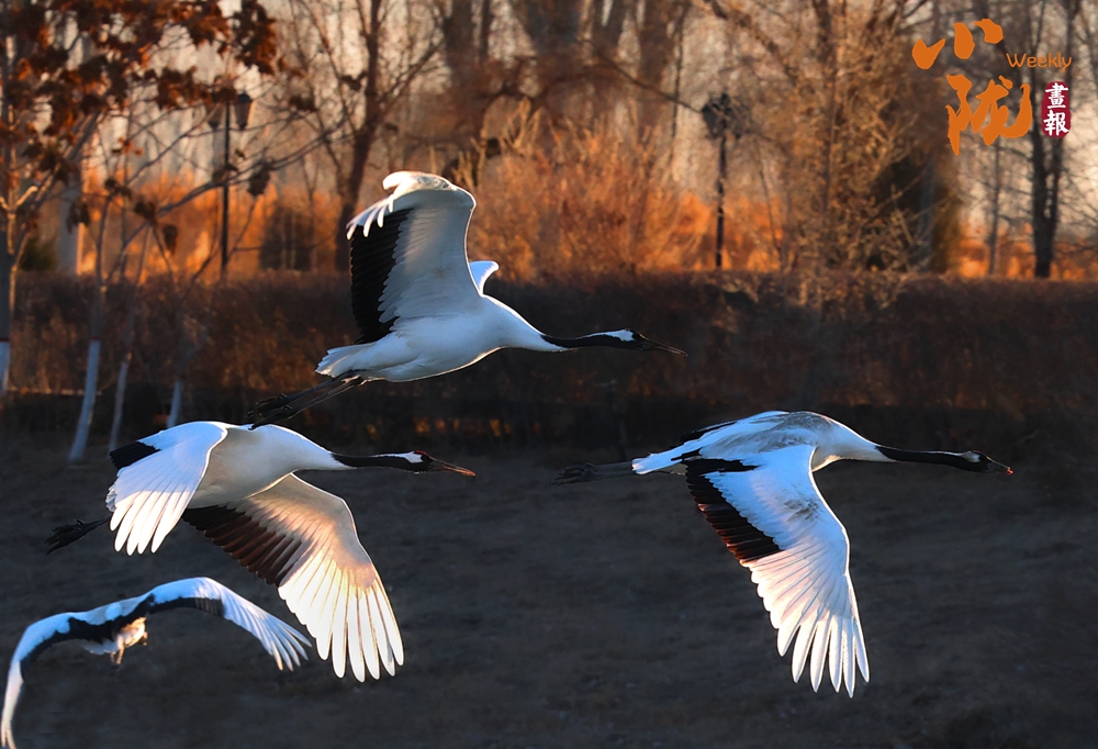 陽光斜照,丹頂鶴昂首振翅,發(fā)出清越的鳴叫,隨即騰空而起,在空中劃出一道弧線。這一幕,不是排練,也不是表演,而是它們生命中最真摯的告白。