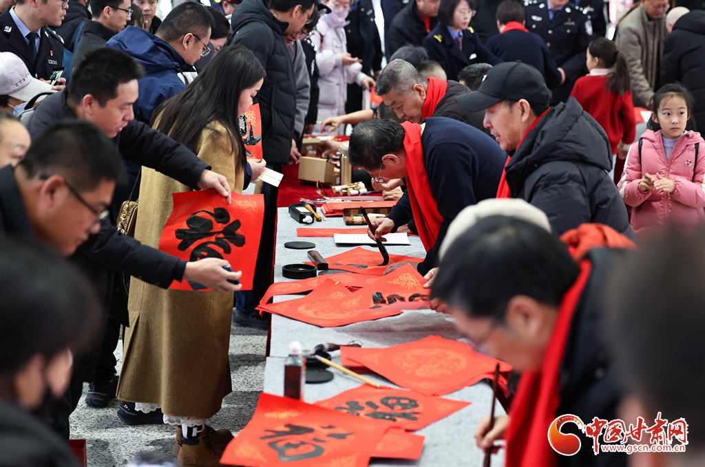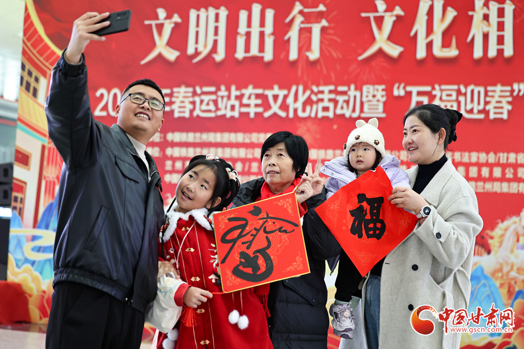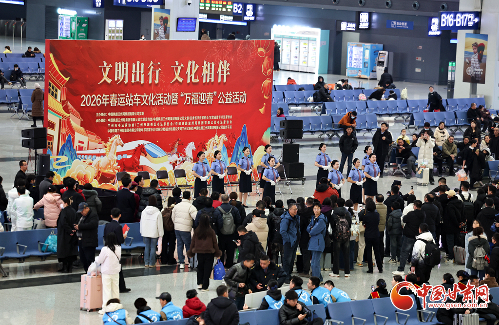 2月2日,2026年鐵路春運(yùn)大幕正式拉開。中國鐵路蘭州局集團(tuán)有限公司在蘭州西站候車廳開展“文明出行 文化相伴”特色暖心活動,邀請書法愛好者揮毫寫春聯(lián)、贈“福”字,同時(shí)奉上精彩文藝表演,為旅客的回家路增添濃濃年味與溫情。