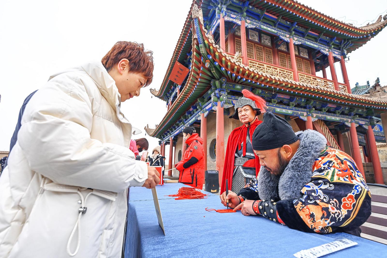 “關(guān)長”為游客現(xiàn)場(chǎng)書寫“福”牌。