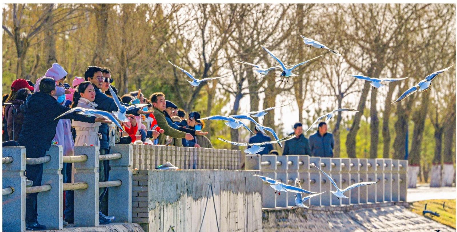 戈壁雄關(guān)迎鷗鳥,羽翼翩翩贊綠洲。連日來,大批鷗鳥分批飛抵我市討賴河生態(tài)文化景區(qū),或舒展輕盈舞姿與岸邊市民互動,或在氣盾壩上“列隊”小憩,或結(jié)伴翱翔感受春日暖陽,盡情享受著我市持續(xù)向好的生態(tài)環(huán)境。(照片由融媒體中心記者 李巍 攝)