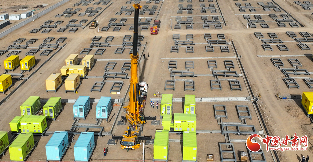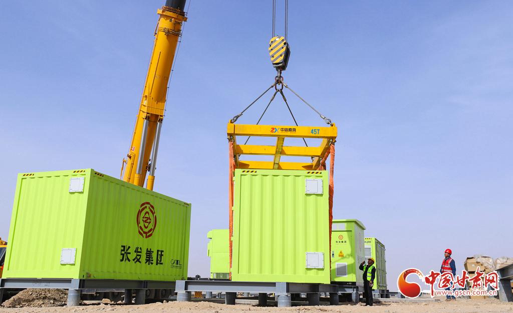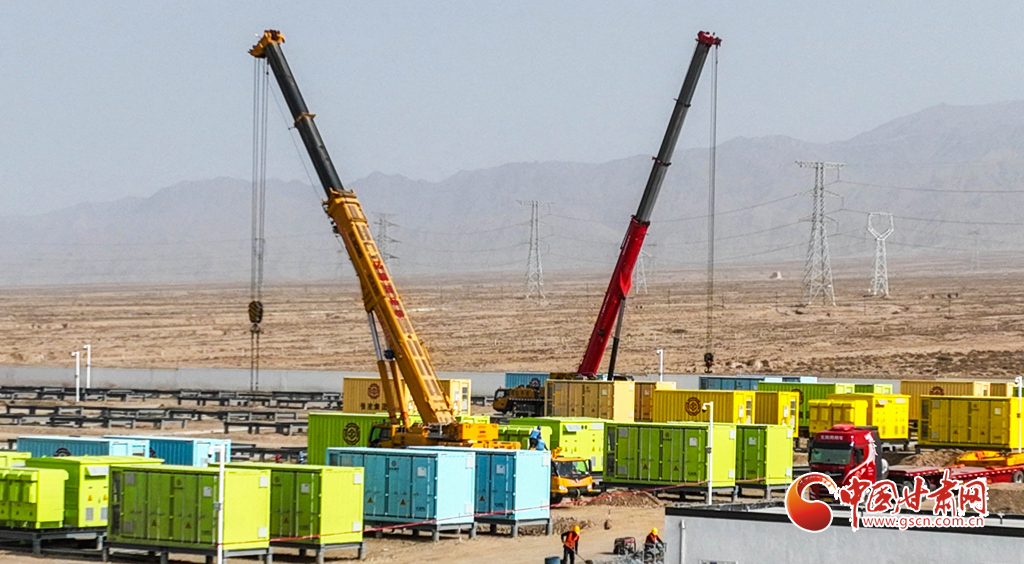 3月19日,張掖市山丹縣東樂灘上,工程建設(shè)者們正在進(jìn)行儲能電站項目電池倉吊裝前的準(zhǔn)備。