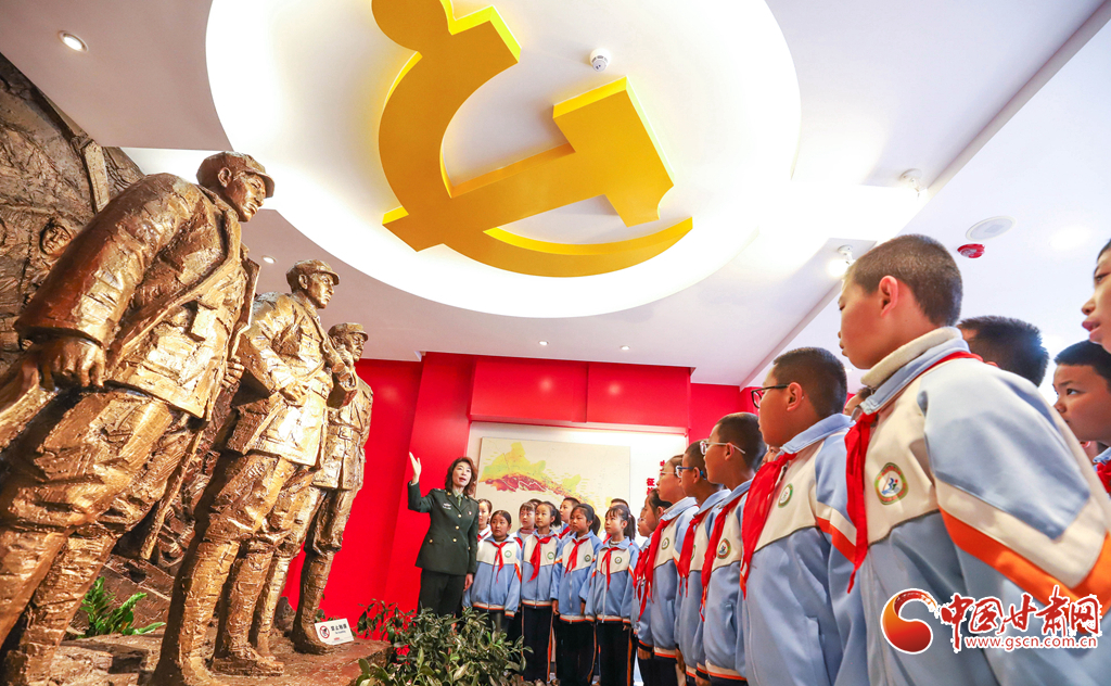 3月30日,高金城烈士紀念館內(nèi),張掖市甘州區(qū)北街小學(xué)的同學(xué)們正在聆聽講解員講述革命烈士的壯烈事跡。