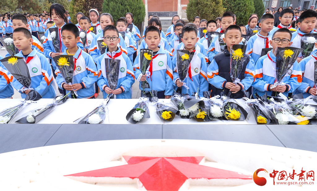 3月30日,高金城烈士紀念館內(nèi),張掖市甘州區(qū)北街小學(xué)的同學(xué)們向紅西路軍烈士紀念碑敬獻鮮花。