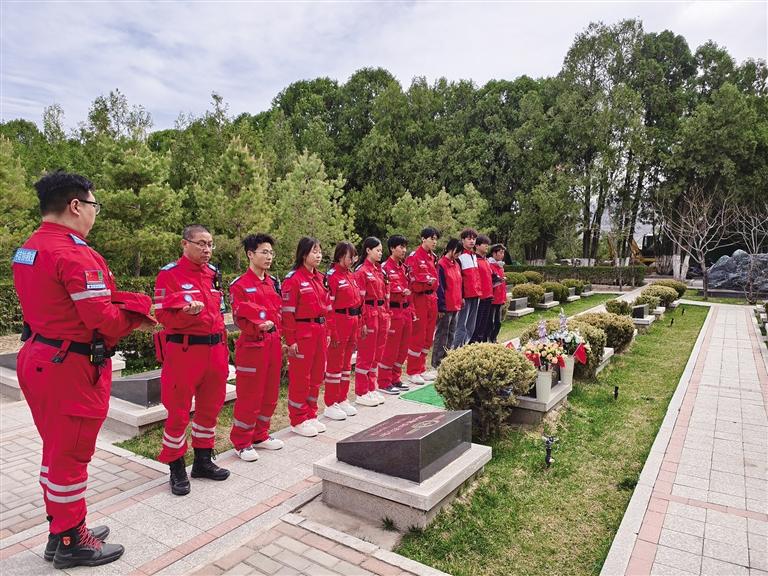 除了應(yīng)急保障,救援隊(duì)還主動(dòng)參與到植樹活動(dòng)中。他們利用空閑時(shí)間,和志愿者一起揮鍬挖坑、扶苗培土,動(dòng)作熟練且充滿干勁。隊(duì)長(zhǎng)張建欣表示:“我們不僅是來保障安全的,更是來貢獻(xiàn)一份力量的。能親手為英烈種下一棵樹,是我們的榮幸。”
