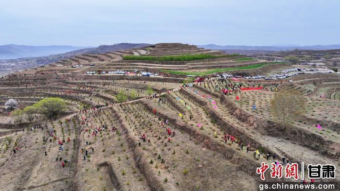4月10日,渭源縣廣大干部群眾在路園鎮(zhèn)植樹點開展春季義務(wù)植樹,為家鄉(xiāng)增添一抹新綠。李瓏 攝