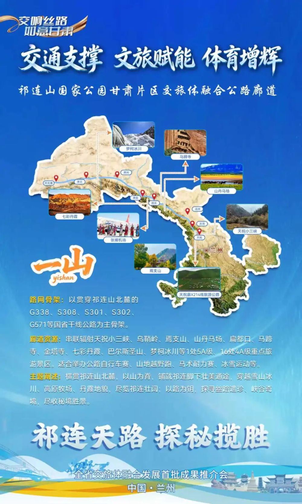 以“祁連天路 探秘?cái)垊?rdquo;為主題,打造祁連山國家公園甘肅片區(qū)交旅體融合廊道,即“一山廊道”。