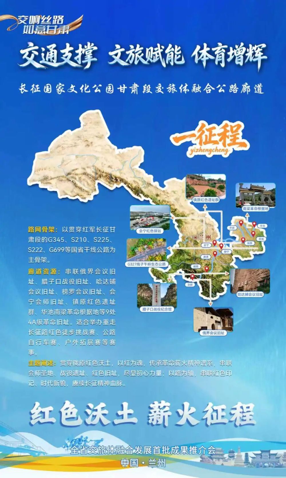 以“紅色沃土 薪火征程”為主題,打造長征國家文化公園甘肅段交旅體融合廊道,即“一征程廊道”。